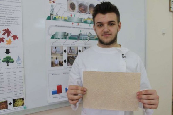 Одинадцятикласник Валентин Фречка із села Сокирниця Хустського району Закарпатської області винайшов технологію створення паперу з опалого листя.