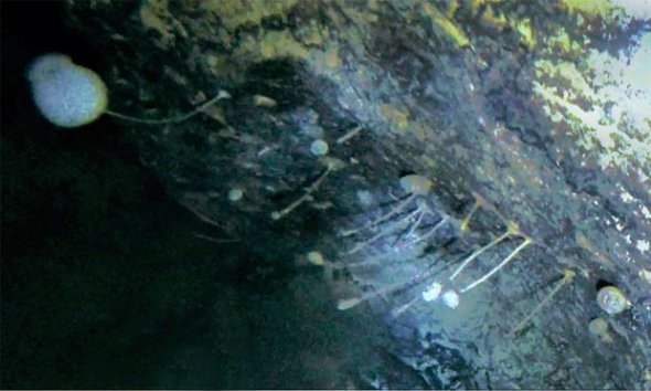 Кадри з відеокамери, яку опустили до свердловини, показали, що на поверхні підводного валуна росли живі організми.