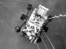 У перші секунди після посадки на Марсі ровер Perseverance сфотографував клуби диму своєю задньою камерою. Це наслідки запрограмованого NASA технічного маневру: Sky Crane або "небесний кран", який спустив марсохід на поверхню Червоної планети, полетів убік і розбився, аби не пошкодити ровер.