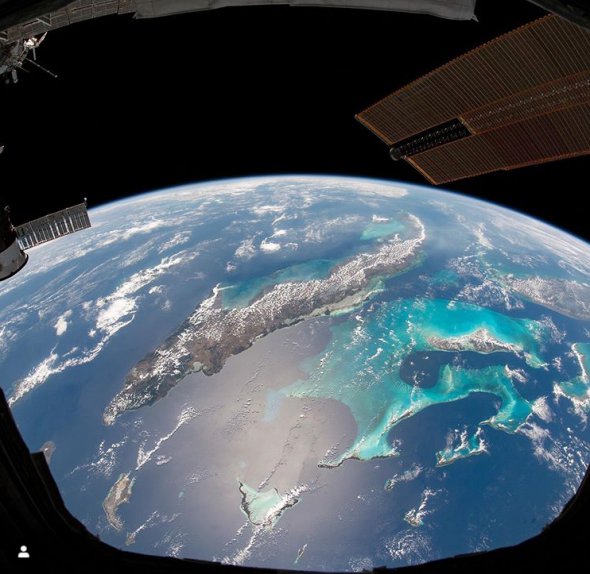 На фото знято Кубу, Багами і Південну Флориду в оточенні синіх і бірюзових вод океану.