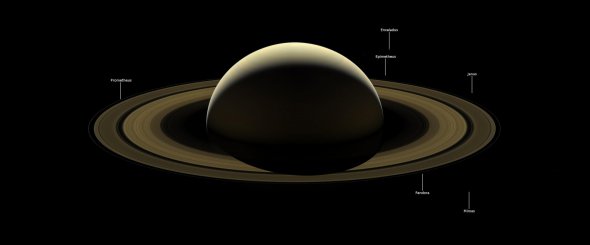 На зображенні також є присутніми 6 супутників планети : Прометей, Энцелад, Янус, Эпиметей, Пандора і Мимас. Розгледіти їх неможливо, тому NASA надало спеціальну версію зображення - де показало, як розташовуються супутники.