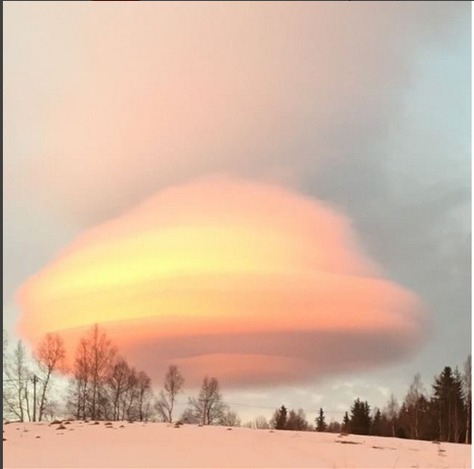 На шведському гірськолижному курорті Оре сталося унікальне природне явище. У небі з'явилася рожева хмара. Вона була схожа на НЛО.