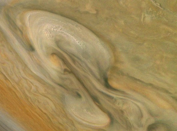 На знімку – північний полюс Юпітера. Апарат зафіксував шторм, який формує химерні фігури в атмосфері планети.
