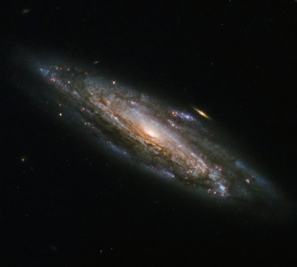 Галактика NGC 5559 має спіральні рукава. Вони заповнені газом і пилом. Рукава - ідеальне середовище для народження нових зірок, кажуть вчені.