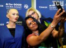 Відвідувачі саміту фотографувалися з роботом та брали у нього інтерв'ю.