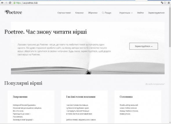 У мережі з'явився сайт Poetree. Це найбільше зібрання поезії українських авторів.
