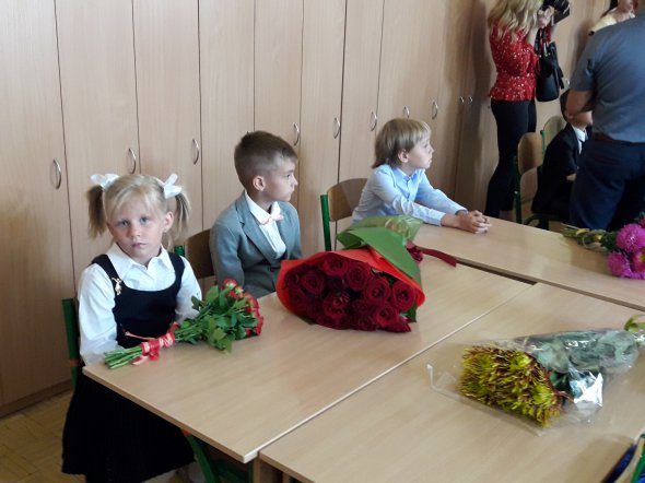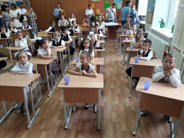 О 8:45 класи починають шикуватися. Вчителі тримають у руках таблиці з назвою класу – від "1-А" до "1-К". Класні керівники вішають на груди учнів бейджики. Там – назва класу і прізвище-ім'я дитини. Лінійка триває менш, ніж півгодини. На заході не має чиновників. У програмі, крім промови директора, два танці та кілька віршів від школярів. Першокласники у шеренгах підтанцьовують, крутяться і озираються на всі боки.