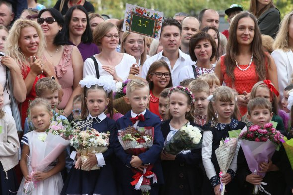 1 вересня о 8:30 на подвір'ї столичної початкової школи № 332 на вул. Бориса Гмирі збираються батьки і діти. Більшість учнів одягнені у вишиванки. Хтось у шкільній формі: білий верх і чорний або синій низ. Багато чоловіків - у сорочках і вишиванках. Жінки – на високих підборах. Більшість прийшли з трояндами і хризантемами. Навколо пахне парфумами.