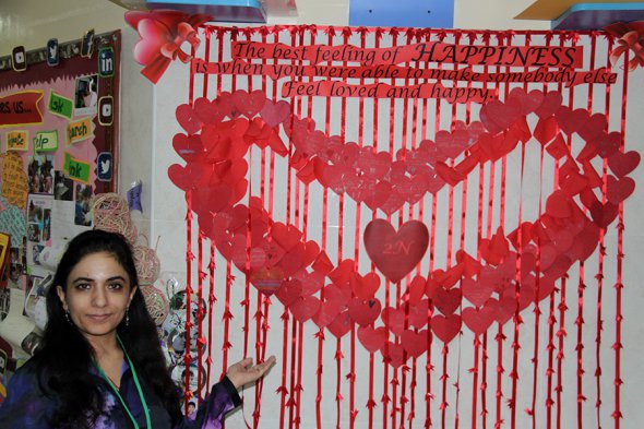 "У нас є спеціальна стіна, на яку учні наліплюють папірці з записами про те, що робить їх щасливими. На цій же стіні висять сердечка з цитатами про щастя. Одного разу шестирічні учні створили проект під умовною назвою "Як зробити так, щоб няні посміхалися". Діти помітили, що няні, які супроводжують їх у шкільних автобусах, майже не посміхаються. Виявилося, що під час поїздки школярі стрибають і погано себе поводять. Саме це заважає няням розслабитися. Учні опитали нянь і підготували презентацію. У ній пояснили однокласникам, що потрібно няням для щастя", - розповідає директор закладу Пранжала Дутта Дас.