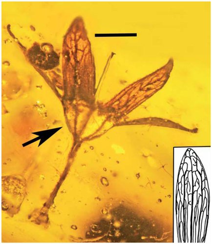 Американські дослідники з Університету Орегон знайшли унікальні квіти у шматкові бурштину. Вік рослини - приблизно 100 млн років.