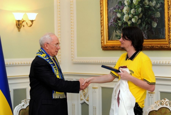 Президент шведського табору вболівальників Ола Сйостед передав прем'єр-міністру вигране пиво та подарував уболівальницький шарф. У свою чергу Азаров пригостив шведського фана українським пивом, подарував вишиванку та сувенір із зображенням Андріївської церкви.