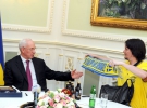 Глава Уряду також поцікавився враженнями шведських фанів від перебування в Україні, на що отримав відповідь, що їм надзвичайно подобається Київ, а українці - дуже привітні та гостинні люди. Вони запевнили, що ще не раз приїдуть до нашої країни.