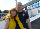 Шведські вболівальники Сандра Андерссон та Джоакім Веннберг з Гетеборга приїхали в Україну на 10 днів. Відвідають три матчі групового етапу своєї збірної. Зустрічаю пару на відкритому тренуванні шведської команди на стадіоні "Динамо" імені Валерія Лобановського. Сандра одягнена у жовту футболку збірної з восьмим номером і прізвищем "Svensson". Джоакім — у синю.