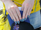"Тату не справжні. Це наклейки. Було весело їх клеїти на руки. А нігті пофарбувала так, щоб підтримати збірну", - пояснює Сандра.