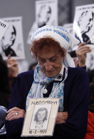 У мене зникла сестра з двома дітьми. Перед тим допитували її чоловіка. Пабло працював викладачем в університеті, захоплювався марксизмом. Коли його привезли додому, пісяв кров'ю. Пишався собою, бо нікого не здав. Від нього вимагали імена студентів. Після допитів не прожив і 10 днів. Тоді прийшли ще раз з обшуком. Після того я сестри не бачила.