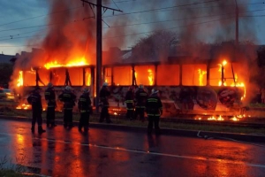 У Львові на вулиці Княгині Ольги зупинився трамвай номер три та почав диміти. Блискавка влучила у громовідвід у кабіні водія.