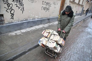 - Усі книжки з власної бібліотеки, - розповідає пенсіонер. - Колись дуже любив читати, та й дешеві вони були тоді. Ото понакупляв. Мав величезну бібліотеку. Але зараз здаю то всьо помалу на макулатуру. Жаль, аж серце крається. Але шо поробиш? Жити за шось треба. Туво в'язку везу в пункт прийому на вулиці Лесі Українки. Там хоть нормальні розцінки. Мені радили продавати їх біля пам'ятника Івану Федорову. Але я не годен з ними там стояти. А так зразу здав - і гроші взяв, хоч і невеликі.