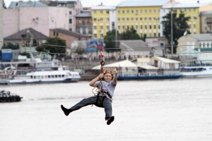 З 9 липня працює найдовша мотузкова переправа через Дніпро в столиці – тролей від арки дружби народів до Труханового острова. Один стрибок коштує 150 грн.