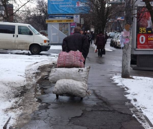П'ятниця, 12.10. 45-річний Петро із села Хотів біля Києва, тягне "кравчучку" з двома мішками картоплі. Ходить дворами багатоповерхівок, що неподалік столичного залізничного вокзалу. Зупиняється біля кожного під'їзду, задирає голову, гукає. Потім кілька хвилин стоїть, чекає на клієнтів.
