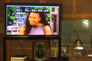 Заходимо до студії. За склом у звуконепроникній кімнаті акторка озвучує "Шоу Марти Стюарт". На фразі "майор Гуліані" її зупиняє режисер озвучення Іван Підгірний:
