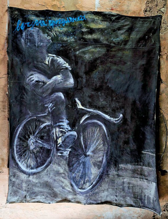 – На картині із застереженням "Далеко у воду не заходи" з річки до нас тягнеться дуля, – розповідає куратор мистецьких проєктів Павло Гудімов, 47 років. – Окремий розділ у творчості Андрія Сагайдаковського – роботи з порадами, побажаннями й застереженнями. На стіні описав правила гри "Дупак". Гравець стає спиною до інших і нахиляється. Решта б'ють його по сідницях, жертва повертається. за незворушними обличчями має вгадати, хто вдарив. Уся виставка пронизана такими ігрищами. Це і філософія, і щось просте. Можна сприймати митця як мудреця й веселу людину, яка хоче поспілкуватися.