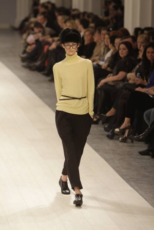 - Осінні тенденції личитимуть усім, крім білявок. Їм треба перефарбуватися. Наймодніший колір волосся зараз - рудий. Я пропоную сорочки і сукні з одягом із вовни, трикотажу й плетеними речами. Сукні оздоблюю масивними блискавками, комірцями-стійками із грубого сукна. Штани залишаю вищими на кілька сантиметрів від кісточки на гомілці - так, щоб було видно шкарпетки. Вони мають пасувати до кольору взуття. За силуетом, це кльош від стегна й завищена талія. Жінкам замість строгого костюму зі спідницею раджу брючний чоловічого крою.