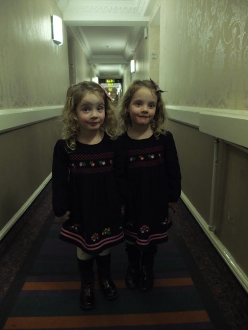 Мартін Хьюз навчив своїх доньок-близнят лякати постояльців готелів. Дівчата беруться за руки і стають у коридорах готелів. Натрапивши на цю пару, гості не можуть втриматися від крику.