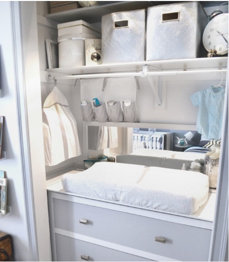 Сповивальний столик, який складається до стіни або є частиною шафи, може заощадити багато простору в маленькій квартирі. Також зверніть увагу на компактні дитячі візки і збірно-розбірні кошики для зберігання речей.