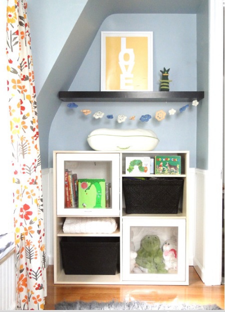 Про те, як облаштувати маленьку дитячу кімнату, аби не доводилося протискуватися між ліжком і сповивальним столиком та шукати підгузки серед повзунків і сорочечок, пише uaua.info