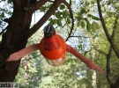 "З чоловіком будуємо приватний дім. Місяць тому шукала в інтернеті, як можна красиво облагородити ділянку. Знайшла сайт, де з непотребу роблять цікаві речі, - розповідає Наталія. - Знайшла вдома старі фарби, хлібничку зламану. Поклала на пеньок, вийшов грибочок. Пофарбувала у червоне, прикрасила білими плямами, вийшов мухомор. Біля високого стовпчика з колесом прикріпила дно півтора-літрової пляшки з-під квасу. Збоку зробили вушка, біла та чорна фарба - ось тобі і зебра Мартін із мультфільму "Мадагаскар". Поряд, із 30 дволітрових коричневих пляшок склали стовбур пальми, із зелених гілок. У планах зробити й інших героїв мультика, бо його дуже люблять діти".