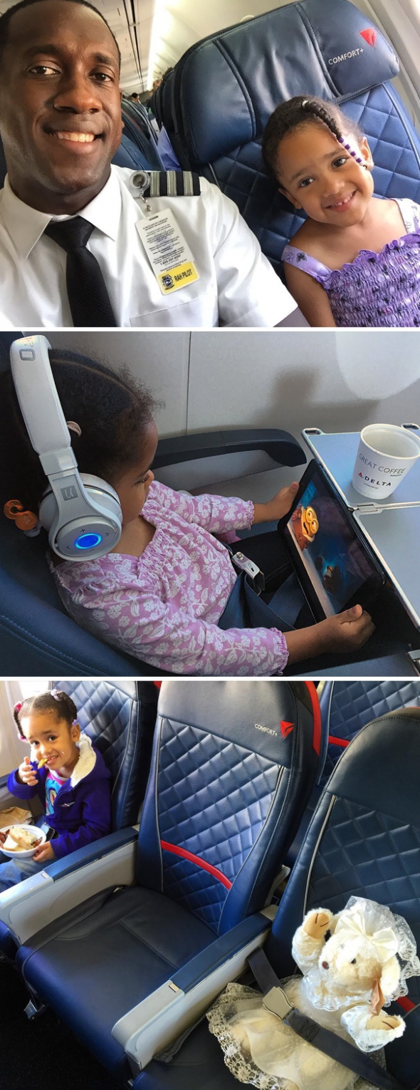 Пілот і батько-одинак. Він часто бере доньку на роботу.