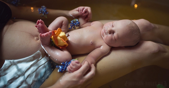 "Тут дитина тільки що народилася прямо в обійми матері в воді. Вона у нестямі від щастя ".