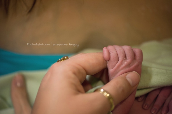 "Ще один чудовий момент з лікарні. Я вже повернулася додому і почала редагувати фото, коли помітила, що ручка малятка складена в жесті світу".