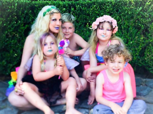 Знімки дітей постійно з'являються в Instaram Торі Спеллінг, але зібрати всіх разом заради сімейного фото виходить не так вже й часто. Днями видався саме такий випадок. На знімку Торі в купальнику сидить на тлі зелених кущів з усіма чотирма дітьми. 8-річна Стелла прикрасила головку віночком, інші теж гарно повеселилися - зелені губи у дівчаток і брови у хлопчиків, мали зробити їх схожими на ельфів і фей. Так, у всякому разі, вважає Торі.