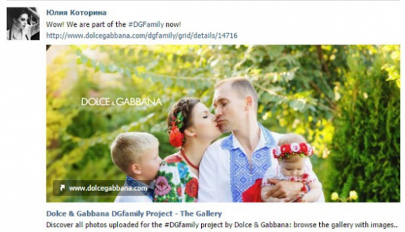 В офіційному Instagram модного дому Dolce and Gabbana, який має 8,8 млн підписників, розмістили фото української родини у вишиванках.