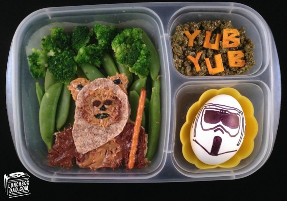 Його сім'я обожнює "Зоряні війни", тому цей тато готує обіди в стилі культової фантастичної саги. Він створює забавні аплікації зі звичайної їжі, яку тільки може знайти на кухні. На створення такого їстівного шедевра йде близько 30 хвилин.