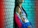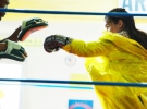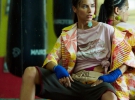 Модель позувала на ринзі в сексуальних образах — купальники з глибокими декольте, напівпрозорі футболки, легінси та бомбери. Спортивний стиль доповнили яскравими аксесуарами та гламурним взуттям на підборах.