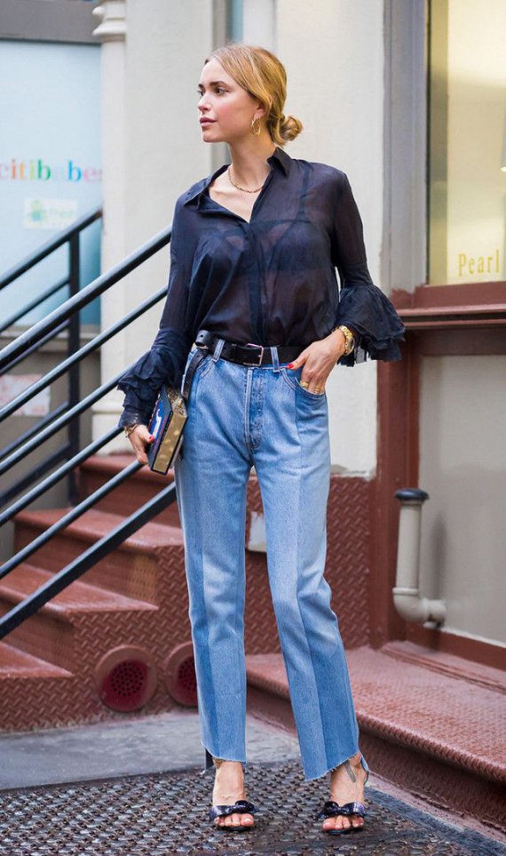 Джинси можуть допомогти візуально подовжити ноги. Для цього вибирайте моделі з підрізаними штанинами. Наприклад, зараз актуальні джинси довжиною 7/8, штанини яких закінчуються на рівні щиколоток, так звані сropped. У поєднанні з блейзером такі джинси виглядатимуть по-діловому.