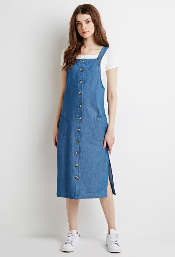 Майже кожна модниця має в своєму гардеробі щось з деніму. Важливо зауважити, що це найпопулярніший стиль вуличного одягу. Наприклад, джинсовий сарафан. Ця річ просто зобов'язана бути в тандемі зі спортивним стилем. Під нього чудово підійдуть білі кеди, а якщо ж раптово у вас вималюється романтична зустріч, то не менше виграшно виглядатимуть човники на підборах.