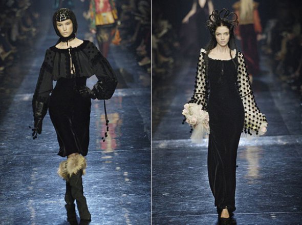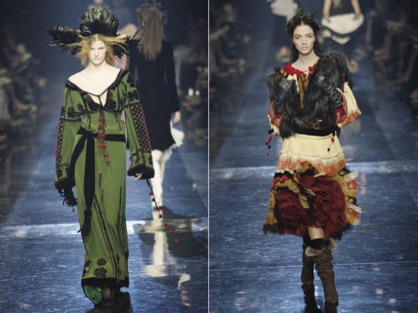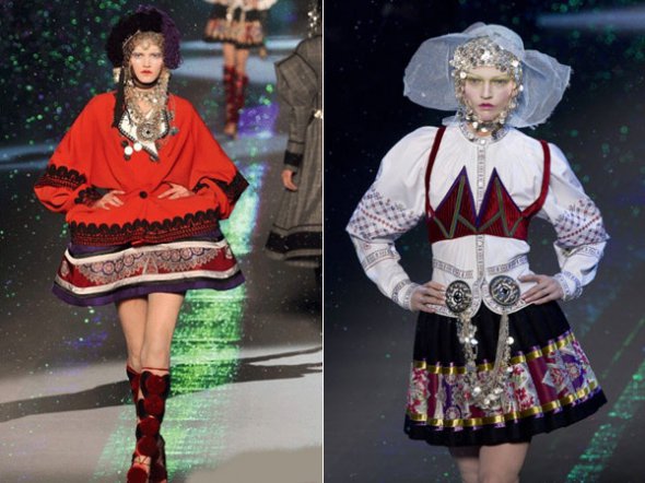 2008 року українськими етномотивами перейнявся дизайнер Dior Джон Ґальяно. В колекції домінували темні кольори, а рукави блуз та подоли спідниць модельєр оздобив вишивкою. Цю колекцію критики назвали "заморожені українські наречені" - обличчя моделей розмалювали сірими та синіми тонами.