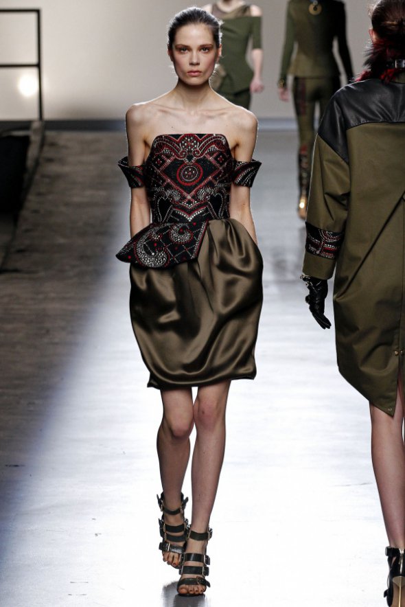 Моделі були одягнені в жилети, зроблені як традиційний український "киптарик", і темні шкіряні пальта. Пізніше в сукні з цієї колекції голівудська актриса Гвінет Пелтроу прикрасила обкладинку Vogue.