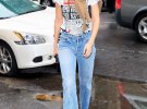 Джіджі Хадід обирає джинси, що ввійшли в моду в 2018 році. Це прямі і укорочені штани з необробленим краєм. Такий фасон універсальний і відмінно поєднується з будь-яким взуттям.