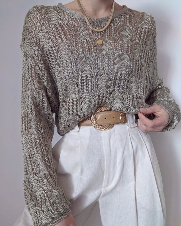 Тканина, яка зараз перебуває на піку популярності й додає кожній жінці елегатності та вишуканості. Фасон більше нагадує лонгслів або гольф і чудово поєднується з класичними штанами та піджаком.