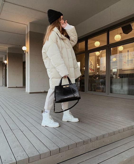 Це об'ємна куртка, більше схожа на вкорочений пуховик. Такий фасон добре захищає від холоду й створює гармонійний образ з іншими елементами гардеробу.