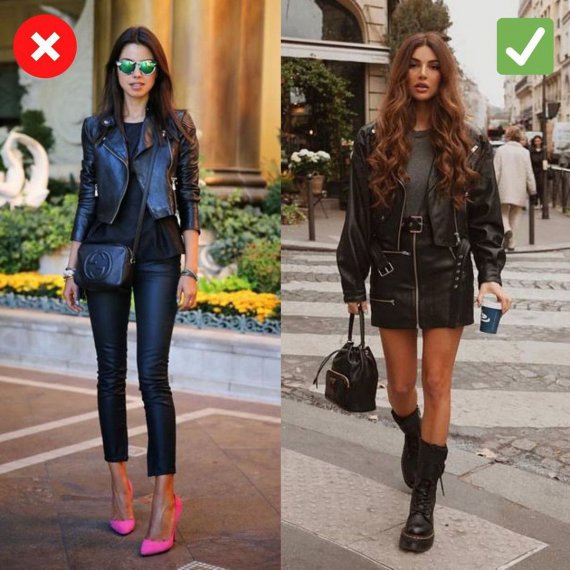 Носити тільки одну шкіряну річ в образі також не варто. Стильним вважається, якщо комбінувати кілька таких речей.