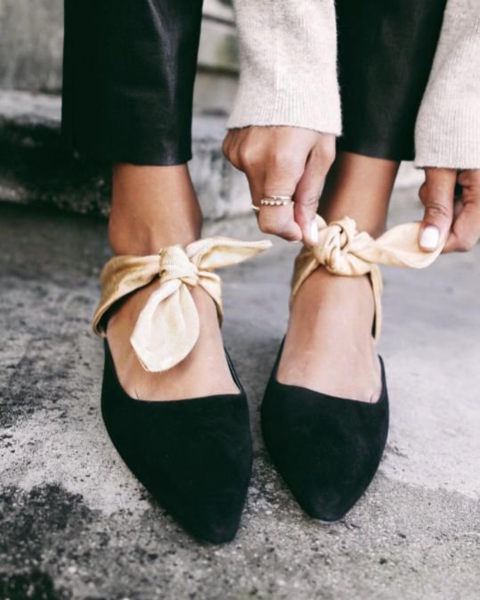 Взуття з бантами можна об'єднувати зі стилями гранж, рок, мілітарі та кежуал. Варто, аби образ був контрастний, але водночас збалансований. Намагайтеся не підвищувати градус жіночності аксесуарами або додатковим декором на одязі.