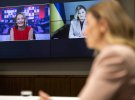 Для цього інтерв'ю перша обрала діловий образ, який складався зі світлого жакета й темної сорочки. Акуратне укладання з легкими локонами, ніжний макіяж і лаконічні сережки завершили стильний образ.