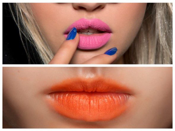 В тренді не тільки спокійні, але і яскраві, майже неонові відтінки. Спробуйте фіолетовий, рожевий і помаранчевий колір в незвичайних виконаннях - матовому, глянсовому, з розтушовуванням. Візажисти радять не робити контурінг губ і залишити обраний колір без "обрамлення". Адже таким відтінкам, як помаранчевий, блакитний або жовтий, дійсно потрібно місце, щоб розкритися.