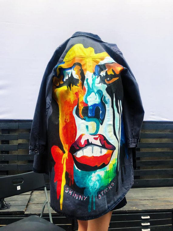 "Це технічно набагато складніше й потребує більше часу. Найважче малювати на джинсових куртках — це може тривати й 2 - 3 тижні. Потрібна зосередженість, акуратність. Але загалом розписую різні предмети гардероба - від одягу до сумок і взуття. Матеріал може бути і шкіра, і тканина. Але не шовк, бо там інша техніка".