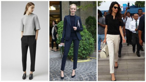 Завужені та вузькі штани. Виглядають ефектніше за інші моделі. Залишаються на першій позиції у модних показах вже декілька років поспіль.